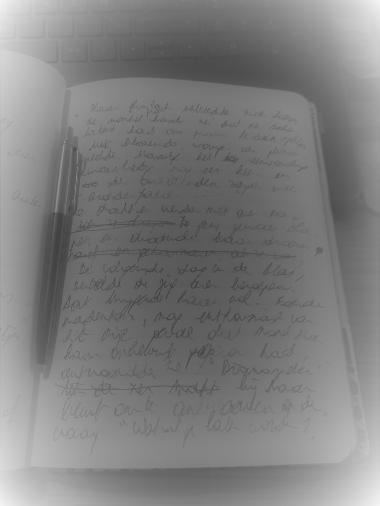Deze tweede zaterdag hield ik het rustig. De traagheid haalde me in. De opdracht was nochtans heel boeiend met goede richtlijnen om inspiratie op te doen. Zoals het vorige week bijna uit mijn pen gezogen werd, zo aarzelend ging het deze week. Ook al zat het al helemaal in mijn hoofd. Gelukkig stelden andere mensen hun werk wel voor. Het was alsof het over hun beste vriend(in) gaat, een familielid of buur. In die korte tijdsspanne hadden ze een heel personage bij elkaar. Er was zelfs een geboren verhalenvertelster bij. Ik kon me haar gekozen personage zo voorstellen. Er werd flink wat gevraagd en feedback gegeven. Iedereen was betrokken. Ik aanschouwde het en nam het in me op.