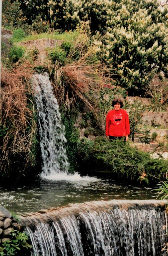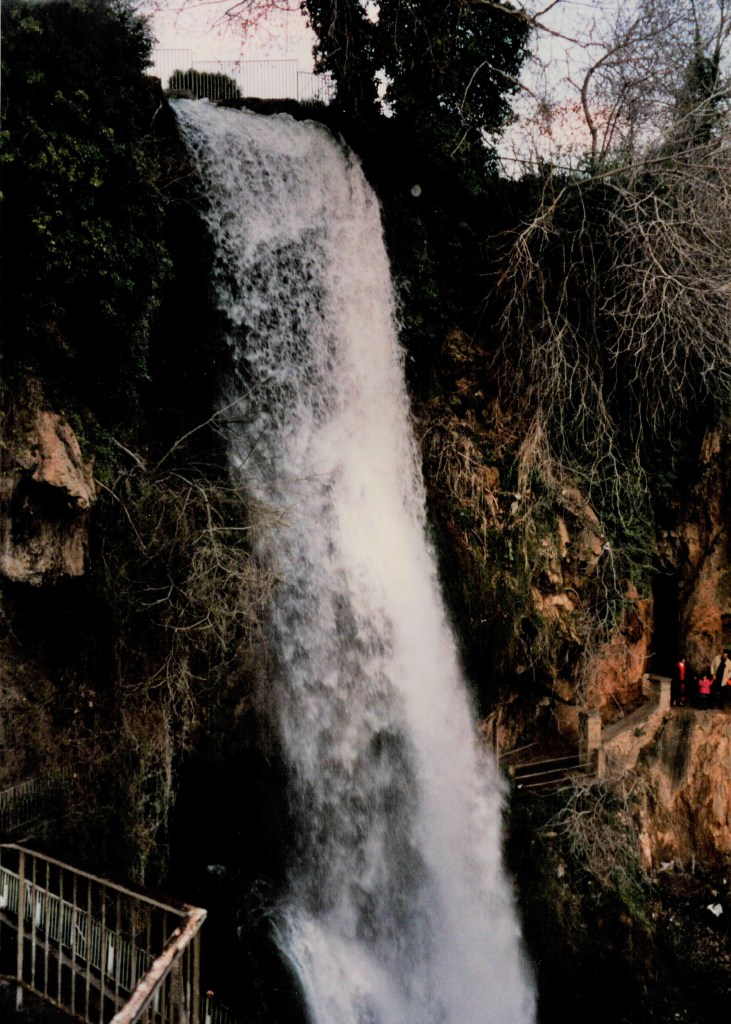 Onderweg, dicht bij Katerini, houdt de politie ons tegen. Ik waarschuw mijn vriendinnen dat ik ineens geen woord Grieks meer ken. Met veel gebaren en twee Engelse woorden, komen we erachter dat de weg versperd is door een tractor. Maar er zijn toch twee wegen naar ‘onze’ berg? Ze zijn beiden versperd. Er moet dus iets meer aan de hand zijn. We komen er nog wel achter. We keren terug en rijden naar Edhessa. Daar zijn er prachtige watervallen, door vele Grieken bezocht en bewonderd. Je kan op enkele plaatsen onder de waterval doorlopen, zonder héél nat te worden. En het ijsje smaakt wel, ook al is het niet zo warm.