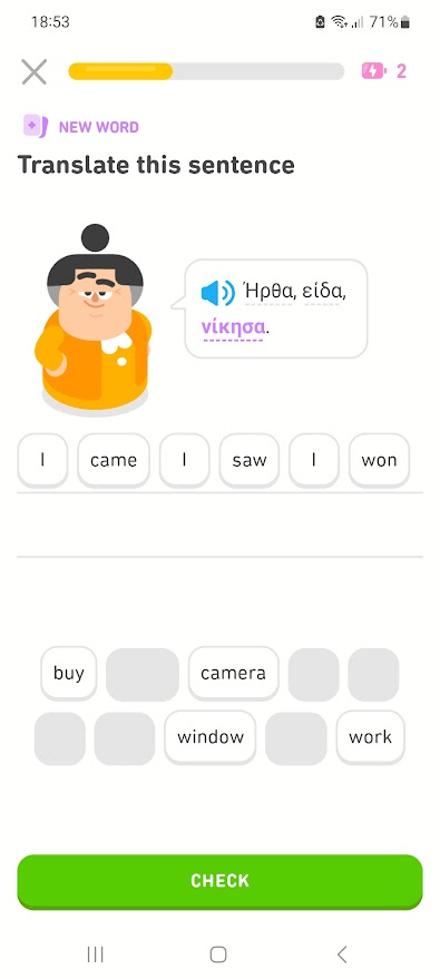 Al ben ik niet echt fan van deze app, ik onderhoud wel wat ik nog weet van Grieks en kom stilaan (heel traag) in de Arabische klanken. Nog niet echt woorden op enkele namen na. De taal zelf blijft wel boeiend.