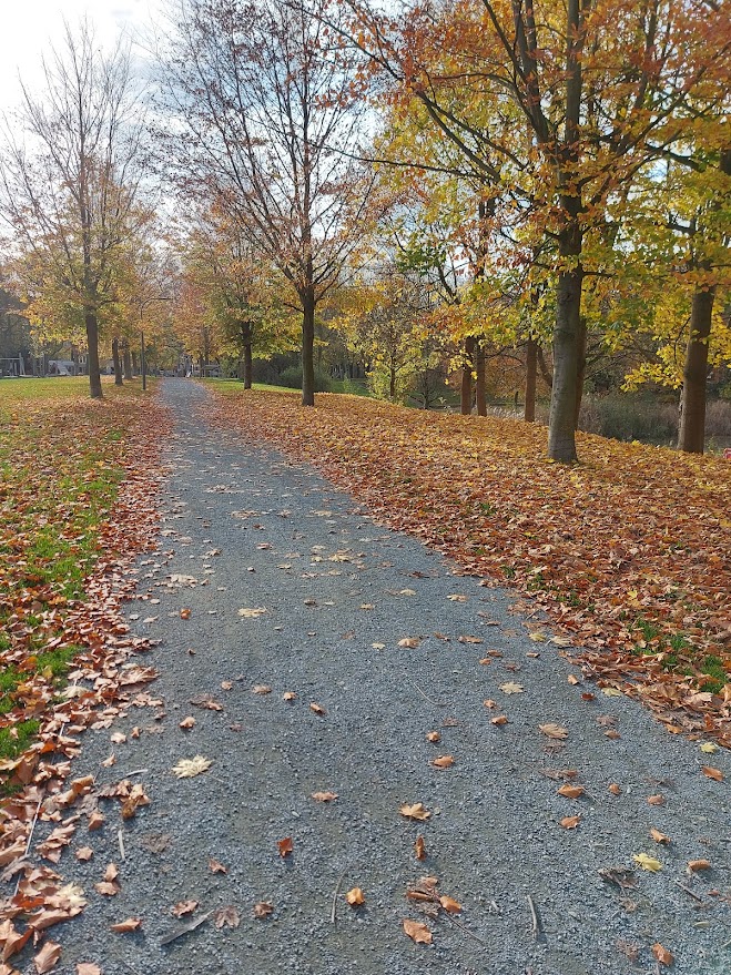 Ik loop graag langs het paadje heen waar de droge blaadjes kraken en de natte me wakker maken (om niet uit te glijden… )
