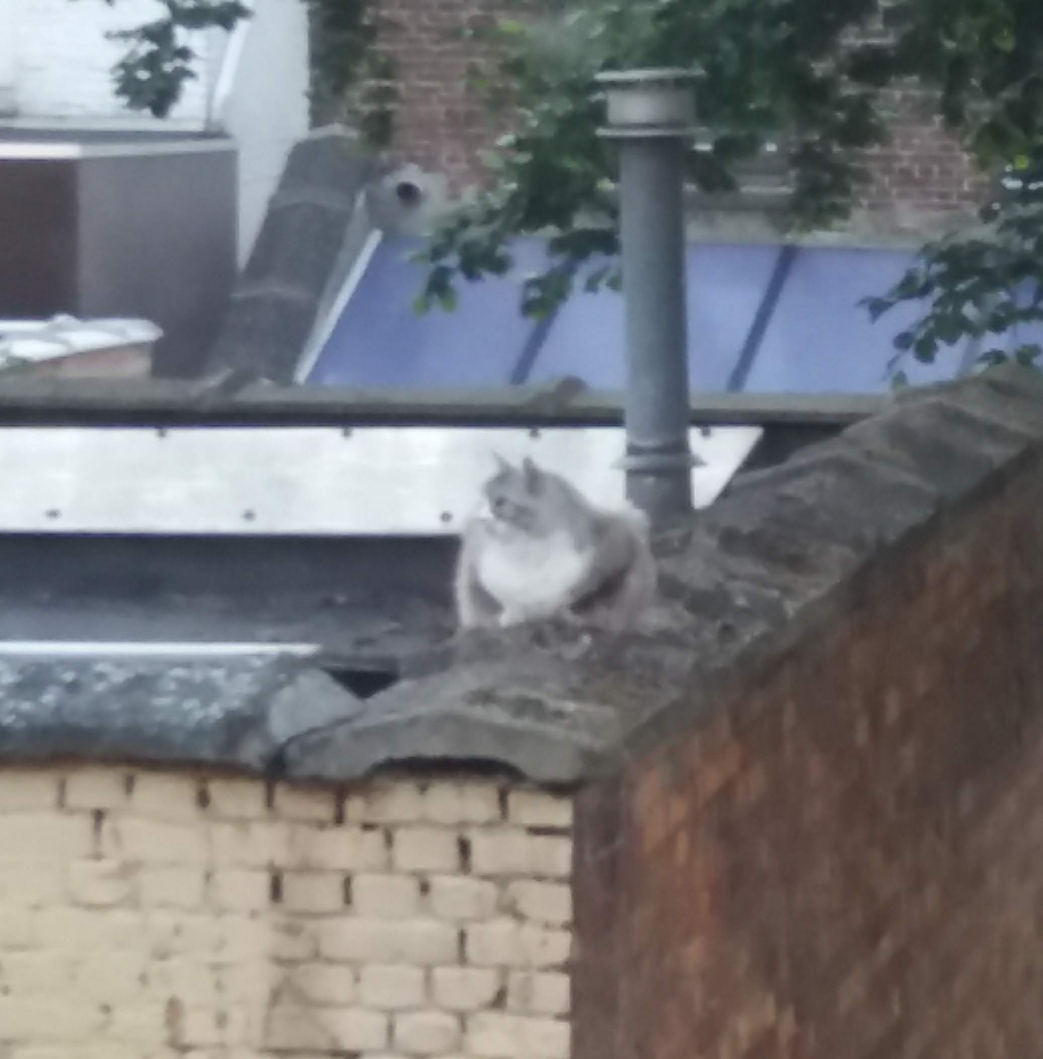 Ik zie vaak een wandelaar in die achtertuintjes. Soms een zwarte met witte pootjes, soms een grijze of nog een andere. Ze hebben allemaal een snorretje, de ene is van het lenige, de andere van het luie type, het snelle of het trage en vooral het laat-maar-gebeuren-dat-leven-type. Dat benijd ik wel eens. De gedachte aan mijn volgend leven komt al eens piepen. Zou ik een kat kunnen zijn in deze achtertuintjes? En wat zou er allemaal te zien zijn, wanneer ik dan over die muren balanceer, op zoek naar ontbijt? Hun schijnbare onverschilligheid, hun bijna flirten voor een streel of een warme zetel, hun arrogant weg wandelen wanneer ze de mens niet nodig hebben, dát benijd ik ook. Ik word zeker kat in een volgend leven. Maar dan in de straatjes van een pittoresk Grieks dorp op een eiland. Wees gewaarschuwd, neem me niet mee terug als adoptiekat!