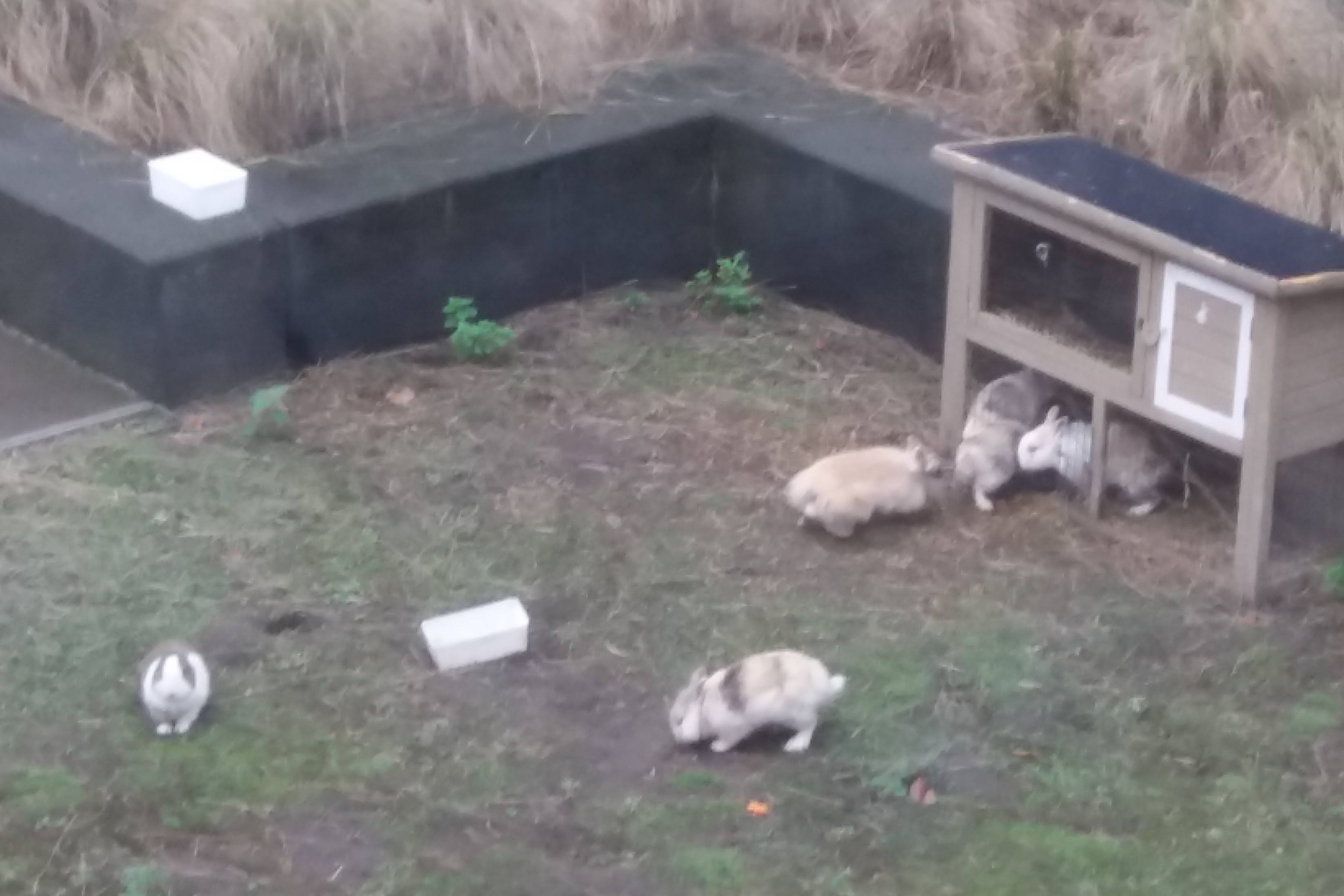 Konijnen in de binnentuin van het woonzorgcentrum. Gelukkig voor hen ben ik nu vegetariër.