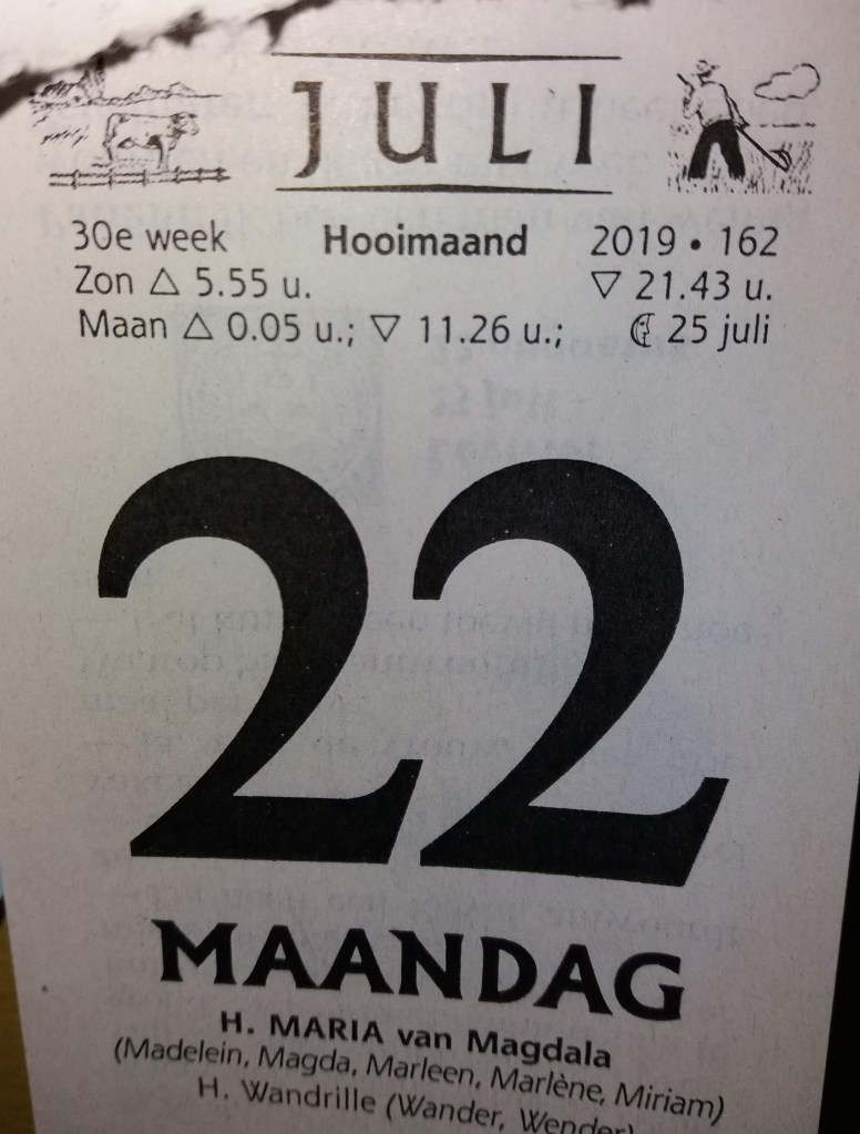 Er is ook iets frivool aan deze dag, de 22ste juli ! Kijk maar eens op de kalender, wier naamfeest het is vandaag … van de vrouw met teveel liefde. 😊