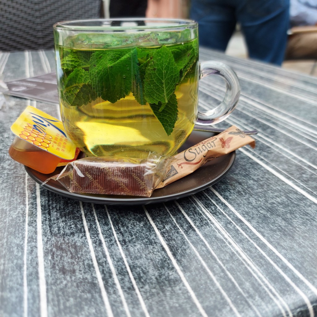 In het Novotel, waar er al eerder andere bijeenkomsten van Melanoompunt georganiseerd werden, konden we even uitblazen en iets consumeren. Ik genoot van een verfrissende verse muntthee.