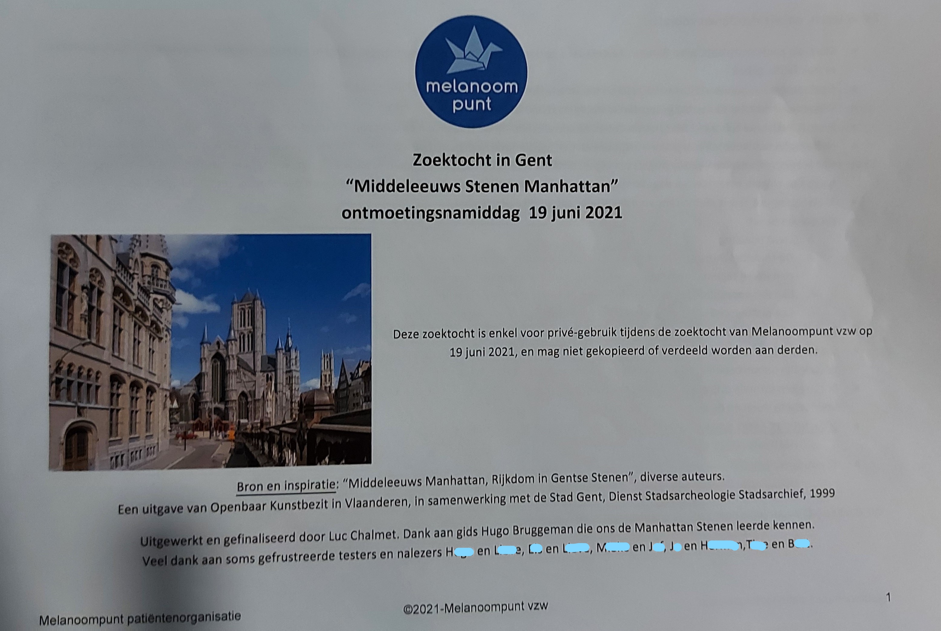 Ik hoefde niet te winnen, maar twee mensen hebben die hele tocht in elkaar gezet, vanalles uitgezocht en dan opgesteld, nagekeken of alles klopt. Dan doe ik graag de moeite om er uit te halen wat ik kan. Zo ook met andere deelnemers. Iedereen deed wat hij/zij in zijn/haar mars had. De samenwerking was fenomenaal. Maar goed want sommige verborgen antwoorden deden denken aan een soort kruiswoordraadsel, al dan niet licht van gewicht (*)